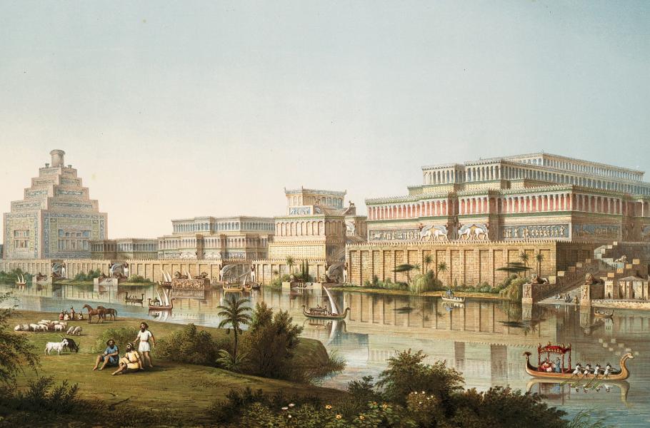 Rekonstrukce asyrského paláce v Ninive podle představ archeologa Austena Henryho Layarda (1817–1894). (ilustrace: Wikimedia Commons, British Museum, PDM 1.0)