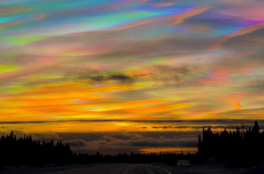 Mezi podmínky utvoření tzv. perleťových oblaků patří extrémně nízká teplota, pohybující se pod hranicí minus 78 stupňů. Formují se hlavně v polárních oblastech, a to zhruba 15 až 30 kilometrů nad zemským povrchem, tedy takřka dvakrát výš než běžná mračna. (foto: Shutterstock)