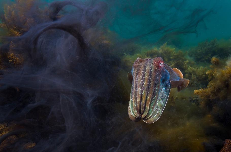 Vzácnou chobotnici z rodu Tremoctopus zachytila Katherine Lu při focení na Filipínách. Toho dne sice bojovala s nevolností, ale když její průvodce začal horlivě gestikulovat, sebrala síly k ponoru a vytvořila úžasný snímek – chvíli prý s pestrobarevným hlavonožcem dokonce plavala.