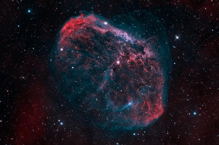 Na pohled půvabná kosmická bublina je známá pod označením mlhovina Srpek (NGC 6888). Nachází se v souhvězdí Labutě, přibližně 5 tisíc světelných let od Země. Motorem tohoto vesmírného útvaru je Wolf-Rayetova hvězda (WR 136) – velmi hmotná hvězda s vysokou svítivostí a velmi krátkou dobou života. Tato hvězda odhazuje ve zběsilém tempu svoje vnější vrstvy - vzniklý hvězdný vítr se sráží s pomaleji se pohybující obálkou, kterou hvězda odvrhla zhruba 250 000 lety, když se stala rudým obrem.