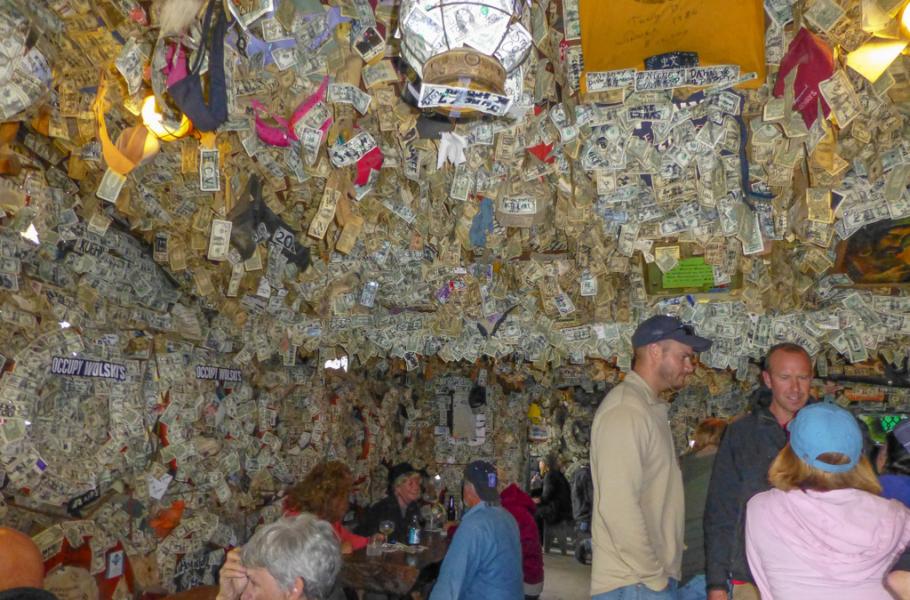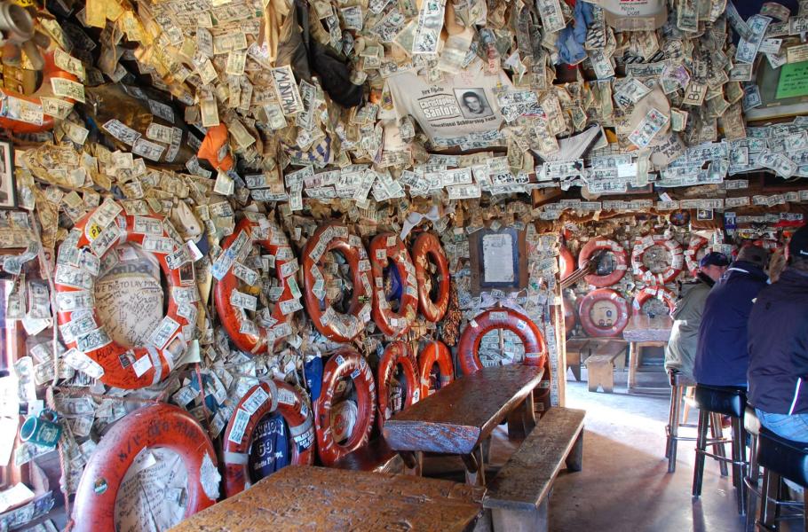 Právě místním námořníkům vděčí Salty Dawg Saloon za originální tradici. Když jeden z nich před lety opouštěl hospůdku, připíchl na stěnu dolarovou bankovku. Barmanovi vysvětlil, že je určena pro přítele, který má dorazit později. Nápad se rychle uchytil a dolarové bankovky popsané krátkými vzkazy připínají návštěvníci na stěny hospůdky dodnes. Originální výzdoba dnes pokrývá takřka všechna volná místa na stěnách i na stropu. Salty Dawg Saloon tak lze do jisté míry považovat za svého druhu banku.
