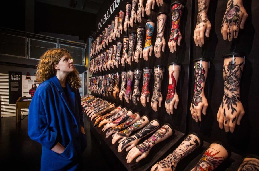 V námořním muzeu v jihoanglickém Falmouthu je k vidění neobvyklá výstava mapující historii tetování v Anglii. Stovka předních umělců z celé Anglie ozdobila silikonové ruce v tomto unikátním a svého druhu největším projektu.