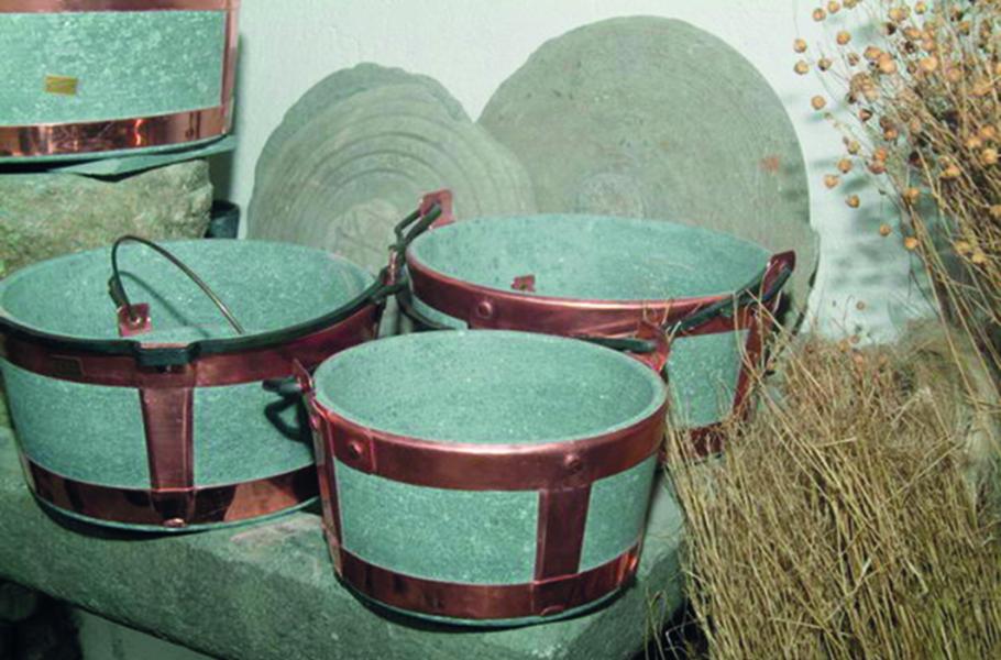 Nádoby z tohoto materiálu se však nehodí pouze k vaření. V době bez elektrické energie, a tudíž i ledniček a mrazáků, se dokonale hodily pro dlouhodobé uchovávání potravin. Nádoby určené k tomuto účelu poznáte podle kamenné obruby, níž které se pak celá nádoba mnohem snáze zvedá. Jejich výroba je i dnes hodně náročná. Vnější část se sice opracuje na soustruhu, ale ta vnitřní, kamenné jádro, se vyjímá pomocí speciálních háků. A to se dělá i dnes ručně. Podle velikosti hrnce to může trvat jen hodinu, anebo i celý den!