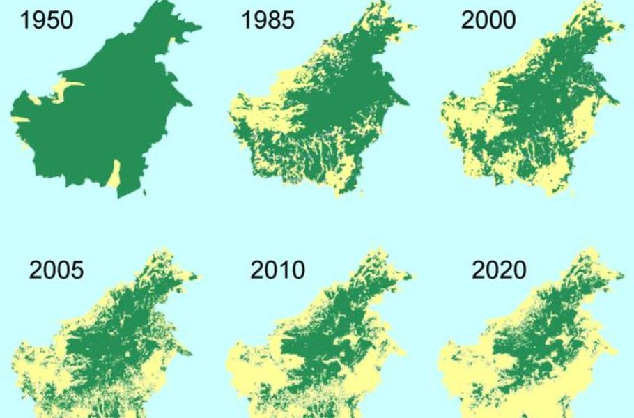 Více než polovina pralesů byla zničena a to, co zbylo, má formu fragmentovaných pralesních ostrůvků. Za nadměrné odlesňování deštných pralesů byly v minulosti zodpovědné hlavně procesy těžby dřeva a uhlí. Dnes se ale hlavní příčinou deforestace stává rozmach palmových plantáží.