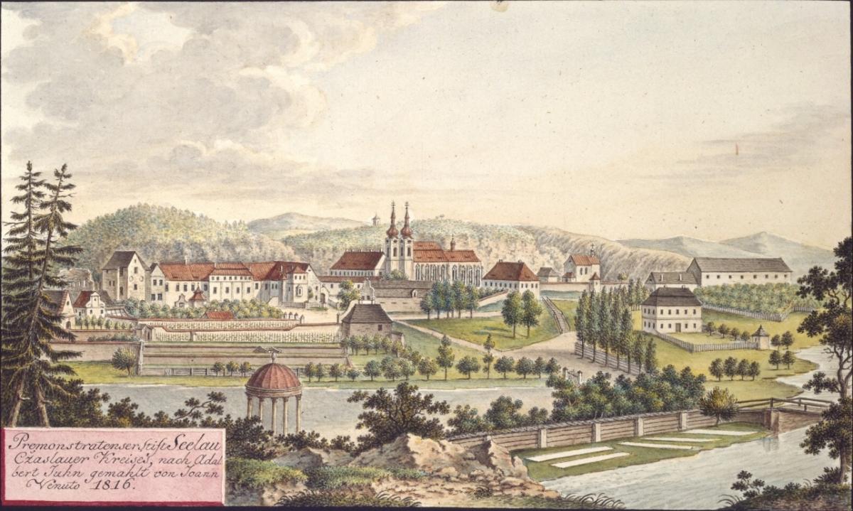 Podoba želivského kláštera z roku 1816. (foto: Wikimedia Commons, CC0)