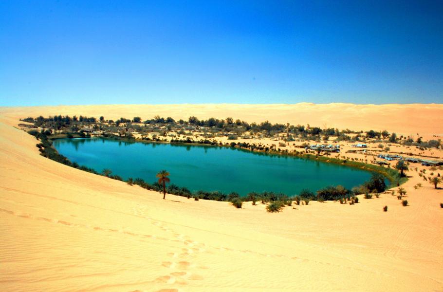 Slaná jezera, která nevysychají ani v létě, dodnes dokazují, že Sahara není jen vyprahlou pustinou. Dávno vyhaslý vulkán Waw Namus v jižní Libyi obklopují voda a bujná vegetace, v nichž doslova pulzuje život, ať už jde o ryby, ptáky či mnoho drobných živočichů. Tady se také podařilo zdokumentovat jeden z posledních pouštních exemplářů krokodýla.