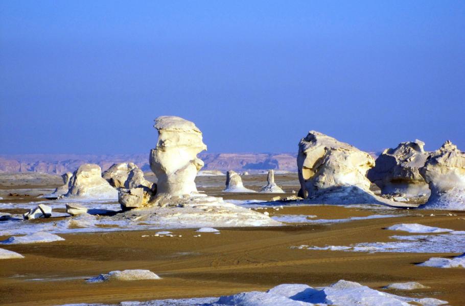 Nejznámější je v tomto ohledu egyptská Bílá poušť, kterou slaná voda zalila před osmdesáti miliony lety. Na dně se pak po tisíce let vytvářely usazeniny z mořských živočichů mikroskopických rozměrů, až vznikla několikametrová vápencová vrstva.