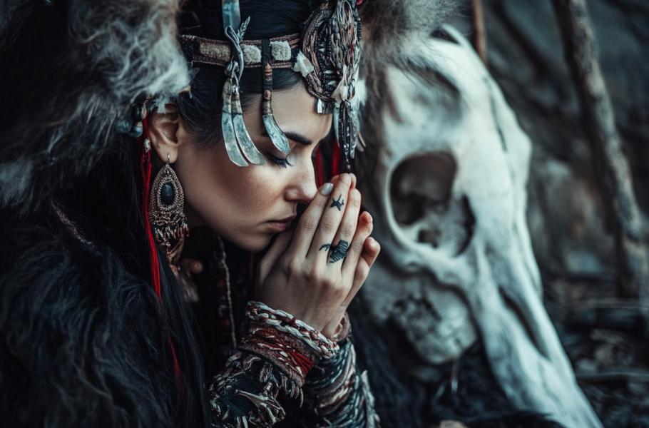 Žena pohřbená zhruba před 12 000 lety poblíž horního toku řeky Tigris v jihozápadním Turecku mohla být podle archeologů šamankou. (ilustrace: Midjourney AI, PDM 1.0)
