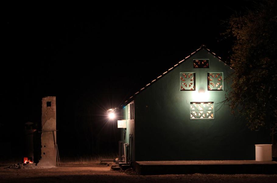 Vzhledem k pokročilému času jsme na rozdíl od lvice a supů nemohli čekat dál a zamířili jsme do kempu Sinamatella. Zatímco v Main Campu se zatím rozpadl jen plot, v Sinamatelle postoupil rozklad mnohem dál. Řada budov totálně zchátrala, brána nešla zavřít a uprostřed kempu byly stopy po pobytu slonů i levharta. Tentokrát se celá oblast obešla i bez hlídače se zbraní. Prostě divoká Afrika ve své plné kráse i nebezpečí. Uvařili jsme na ohni kávu a šli spát.