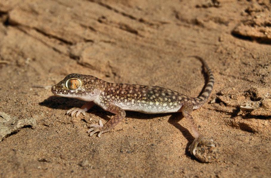 I s plazy to začalo být zajímavější. Po písku, který byl přece jen ze dne trochu vyhřátý, pobíhali a lovili svou potravu drobní a nenápadní gekonci Stenodactylus petrii, přizpůsobení stavbou těla a strategií lovu k životu na jemných přesýpavých píscích. V Maroku se kromě tohoto zástupce vyskytuje ještě jeden příbuzný druh a tím je druh Stenodactylus sthenodactylus, jenž je naopak přizpůsoben hamadám (kamenitým pouštím).