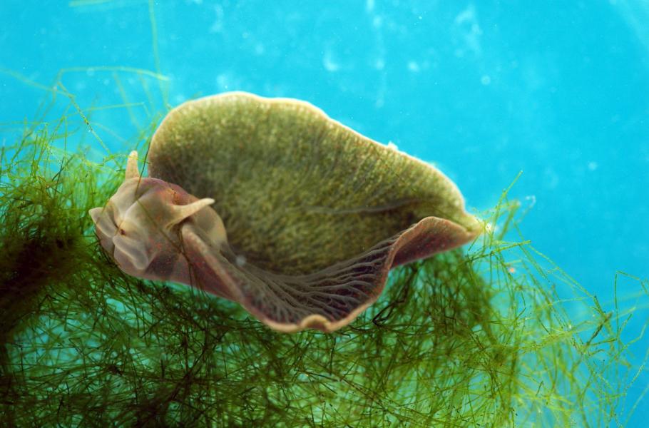 Mořský plž Elysia chlorotica neudiví velikostí. Obvykle je jeho listovité tělo dlouhé jen dva nebo tři centimetry a skutečně kapitální kusy mohou dorůst délky až šesti centimetrů. Na tomto obyvateli mělčin rozkládajících se při severoamerickém pobřeží Atlantiku je nápadná jeho barva. Mladí plži jsou zbarveni hnědě či načervenale, ale po první pastvě získají jasně zelený odstín. Elysia chlorotica se totiž živí mořskou řasou Vaucheria litorales. Plž nabodne řasu ostrým ústním ústrojím a pak z ní vysaje obsah buněk. Je to však velmi netypická hostina, protože plž obsah buňky nestráví. Naopak, postará se, aby zůstal netknutý, a zajistí si tak schopnost fotosyntézy.