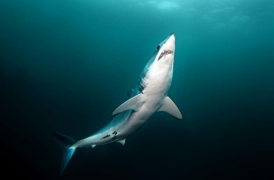 Najednou z hlubin připlouvá jiné, rychle se pohybující tělo dalšího tvora. Rychlé až zbrklé pohyby ukazují, že dnes máme opravdu velké štěstí. Naše návnada totiž přilákala nejrychlejšího žraloka světa – žraloka mako (Isurus oxyrinchus). Vzácný druh, který křižuje teplejší vody světových oceánů, se málokdy ukáže na návnadu. Zástupce dvou druhů, kteří nyní plavou vedle nás, je poznat na první pohled: Tvar těla a pohyb je zcela odlišný.