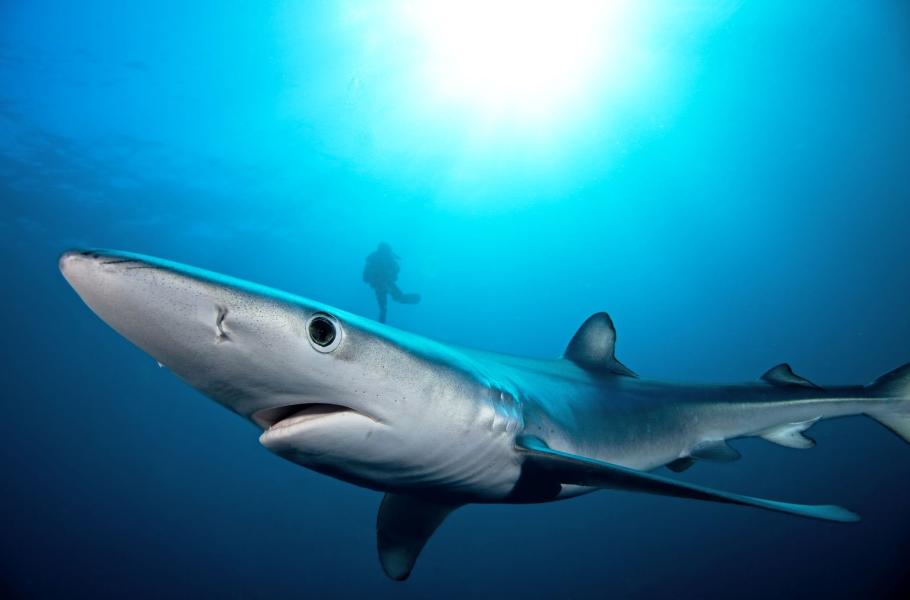 Při každém ponoru byli žraloci modří velice kontaktní a vydrželi s námi po celou dobu našeho pobytu pod vodou. (foto: Martin Procházka - se souhlasem k publikování)
