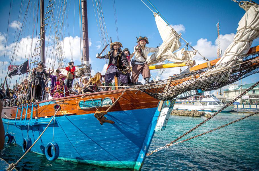 Kajmanské ostrovy platily v 17. a 18. století za ideální útočiště pirátů: Nabízely dostatečné zdroje vody i jídla a zároveň jsou relativně odloučené, takže skýtaly potřebné soukromí. Nikoliv náhodou se tedy právě tam koná slavný festival Pirates Week s účastí dobových lodí, jimž velí nadšenci v kostýmech inspirovaných hollywoodskou romantikou. (foto: Shutterstock)
