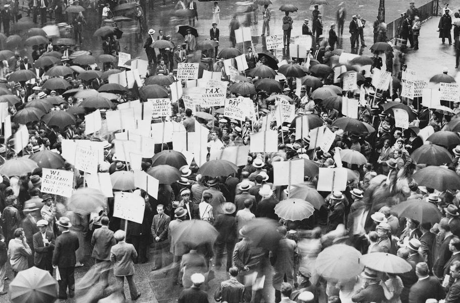 Od konce prosperity 1929 až po vyvrcholení hospodářské krize v roce 1932, bylo devět tisíc bank nuceno zavřít, či zbankrotovalo. Přes sto tisíc firem zkrachovalo.