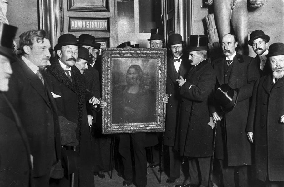 Apollinairův sekretář Honoré Joseph Géry Pieret chtěl totiž dokázat, že Louvre nemá dostatečné zabezpečení, a tak z muzea ukradl několik sošek. Prostřednictvím básníka je později koupil i Picasso, jenže jakmile zmizela Mona Lisa, začali oba panikařit: Sošky proto odnesli do jedné pařížské redakce, jež měla zajistit jejich anonymní vrácení do Louvru. Místo toho na umělce udeřila policie, ani jeden však o krádeži nic nevěděl, a tak je propustili. Pátrání pokračovalo, ale pokaždé skončilo ve slepé uličce – dokud se obraz o dva roky později neobjevil.