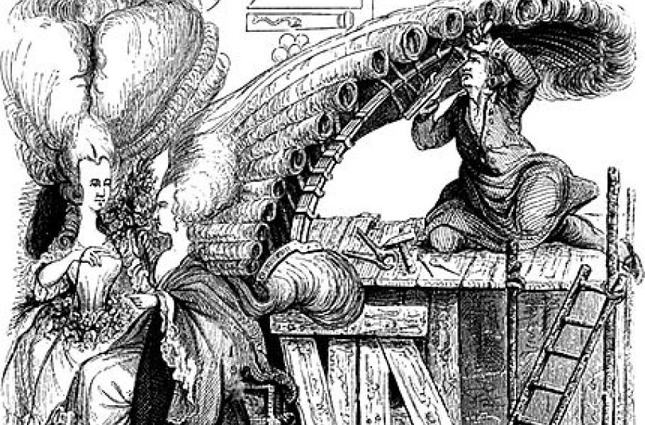 Osobním kadeřníkem Marie Antoinetty byl Léonard. Vytvářel složité účesy, které se tyčily až metr a půl nad hlavami nositelek. Sama královna Marie Antoinetta trávila mnoho času vymýšlením nejen neobvyklých šatů, ale i nových účesů. Vytvoření takového uměleckého dílo trvalo téměř celý den a proto se na hlavě nechávala několik dnů. Nejenže se tak velmi obtížně spalo, ale ve vlasech se množily vši. Oblíbeným módním doplňkem se proto stala drbátka a škrabátka. A účesy se pudrovaly taky proto, aby tam vši nelezly.