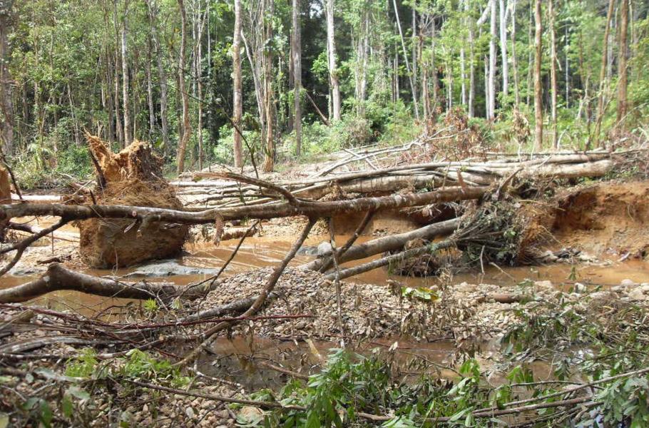 Lokální fragmentace pralesních společenstev je předehrou pro přírodní katastrofu mnohem větších rozměrů. K získávání zlata ze zlatonosných sedimentů se kromě invazivního promývání využívá postup kyanidového loužení, nebo amalgamace – srážení rtutí. Zlatokopové lijí přes separační síta do vykopaných tůní a nádrží stovky barelů s chemikáliemi, někdy jejich obsah vyklopí přímo do toku řeky. Zlatá horečka tedy neničí jen lidi, ale doslova otravuje zdejší zemi. Rtuť, která dokáže dlouho přetrvávat v živých organismech, se kumuluje v potravních řetězcích, a přes otrávené ryby se dostává do těl domorodých obyvatel.