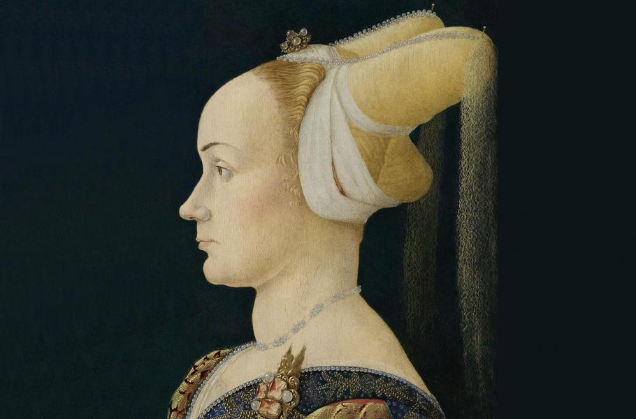 Estetická hodnota vysokého čela je velmi diskutabilní a v současnosti daleko častěji narazíte na účesy, jež se ho pokoušejí zakrýt. V renesanci však platilo za zlatý standard krásy. Italský básník Agnolo Firenzuola například tvrdil, že čelo musí být „vysoké, široké a bělostné“. Jeho výšku přitom měřil od linie vlasů až po okraj obočí a kořen nosu, a v ideálním případě šlo o třetinu obličeje. Pokud tedy dámám nepřály geny, sčesávaly si hřívu dozadu, aby se co nejvíc přiblížily ideálu, nebo si porost na čele dokonce vytrhávaly. (foto: Wikimedia Commons, NGV, CC BY-SA 4.0)