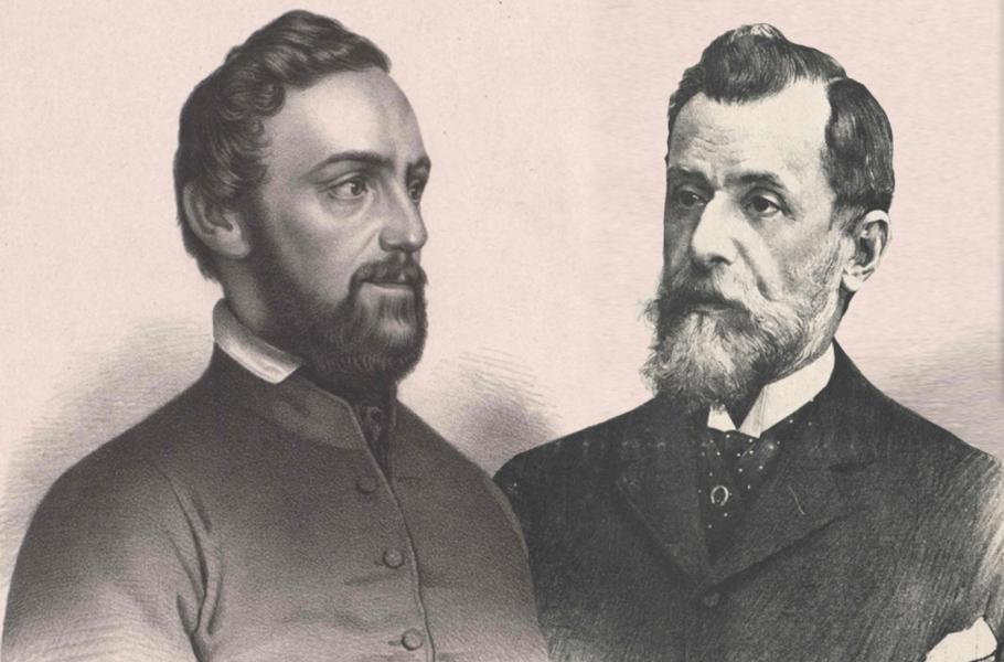 František Ladislav Rieger (vlevo) by zástupcem staročeské strany. Za české Němce vyjednával podmínky vzájemného soužití Ernst von Plener (vpravo). (ilustrace: Wikimedia Commons, PDM 1.0)