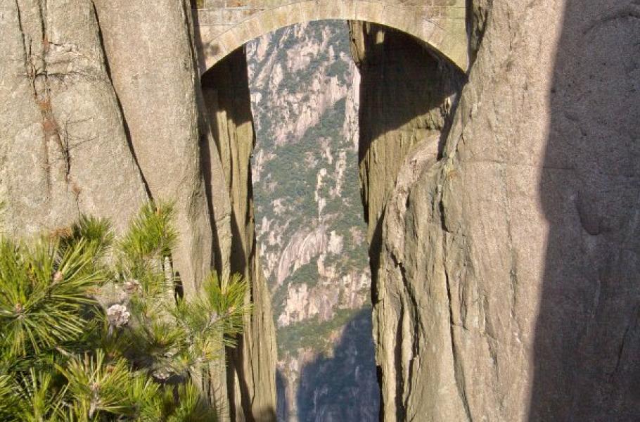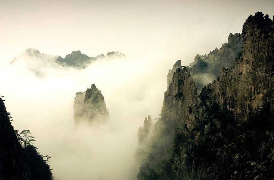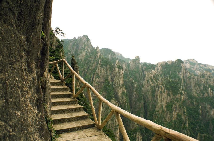 Čínské Žluté hory inspirovaly od pradávna básníky i malíře. Dnes na řadu zdejších skalnatých vrcholků vedou turistické stezky přecházející v kamenná schodiště. Některé z nich jsou však jen pro dobrodružné povahy – jde na nich takřka o život