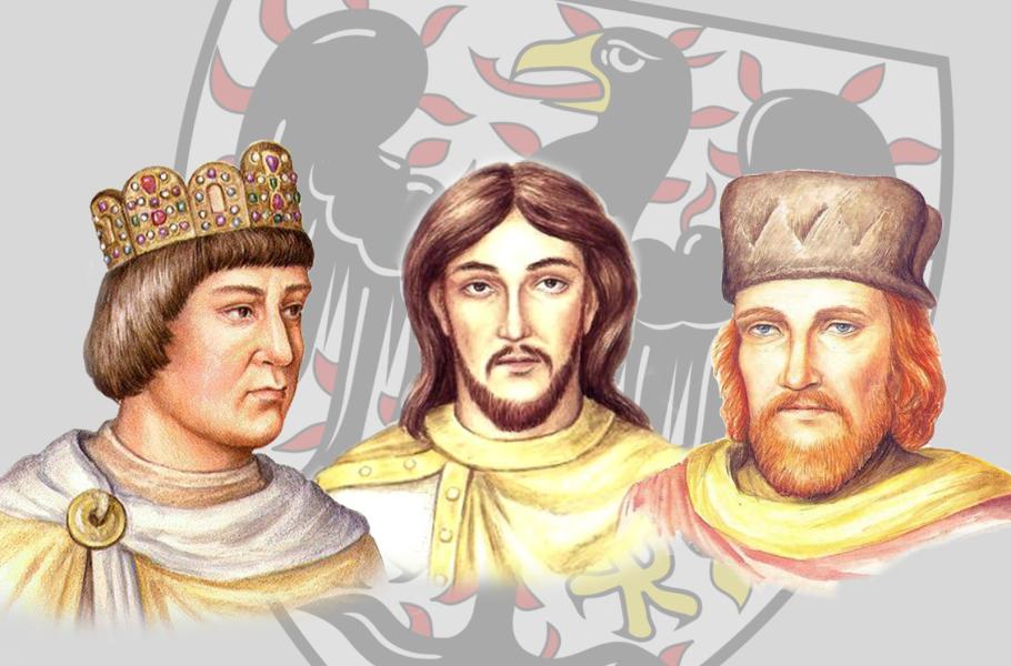 Polský kníže a dočasný vládce Čech Boleslav Chrabrý (967–1025) a knížata z rodu Přemyslovců - Oldřich (asi 970–1034) a Boleslav III. (asi 965–1037).