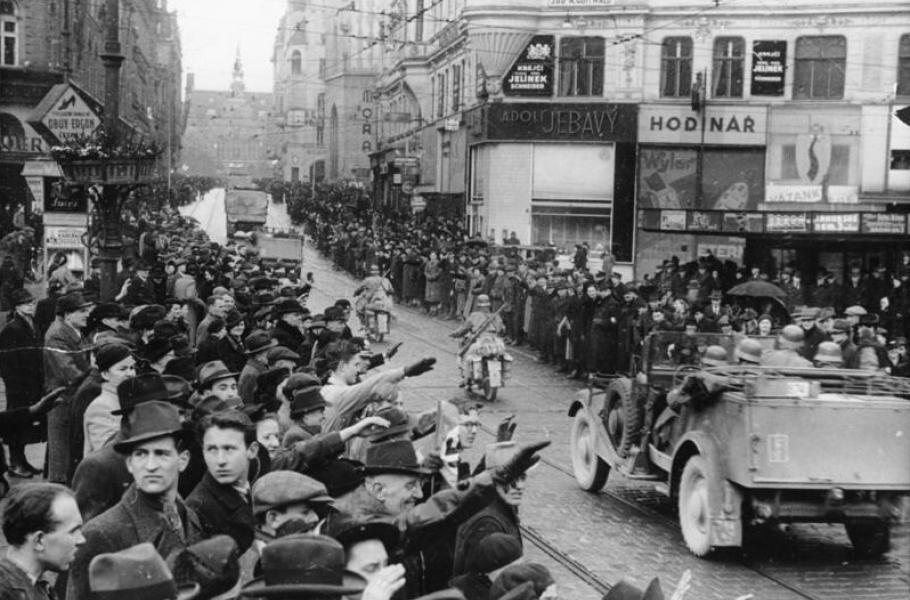 Brněnští Němci vítají 15. března 1939 německou armádu. Také Jan Svoboda měl k okupantům velmi blízko