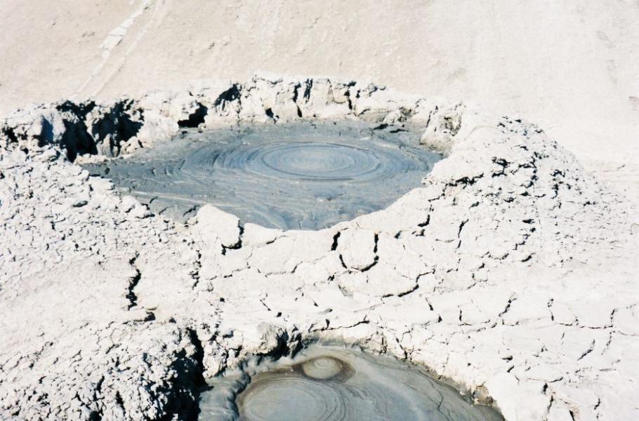 Při pohledu na drobné zábavně bublající sopouchy se možná nezdá, že tyhle sopky mohou být opravdu nebezpečné. Jenže na těch největších to vypadá trochu jinak. O tom se skoro přesvědčíme na vlastní kůži, když se na jeden neprozřetelně vydáme. Náhodně vybraný vrch leží nedaleko městečka Sangačal. Z výstupu na třistametrový sopečný kopec je v občas neschůdném terénu skoro velehorská výprava, byť namísto skal a ledovců nás provází jarní step. Jenže chvílemi se kavyly a další kvetoucí byliny dočista ztratí. Hlinitá pole posetá vyvrženými kamínky – sklíčky sádrovce, valouny křemene, úlomky zkrasovělého vápence a dokonce hrudkami kovu, to všechno má na svědomí síla ropy a plynu z nitra bahenní sopky.