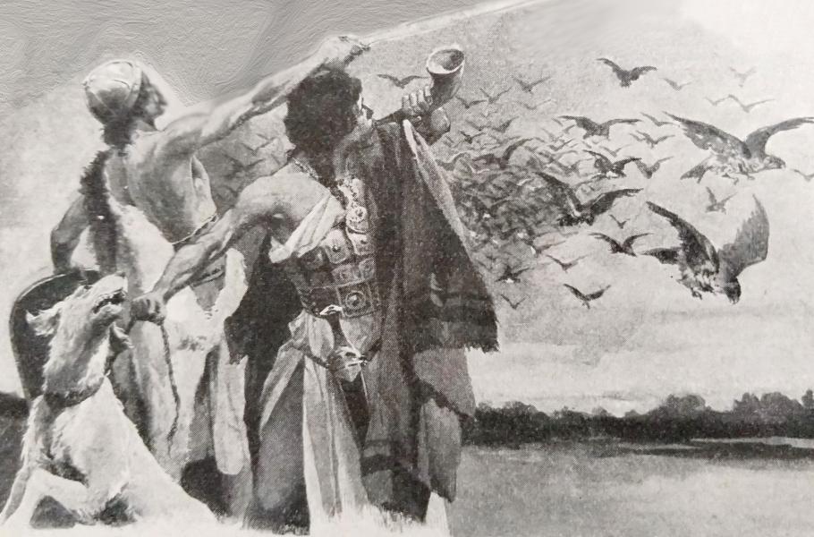Na straně Lučanů nebojovali jen muži, ale také dravci. (ilustrace: Wikimedia Commons, Věnceslav Černý, PDM 1.0)
