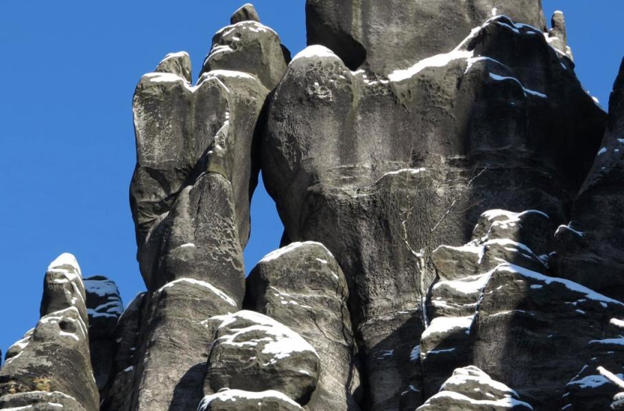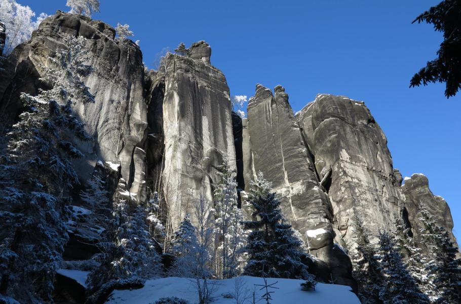 V zimě se skalní scenérie vyznačují neopakovatelným půvabem. Sněhový lem totiž na mnoha místech zvýrazní kontury pískovcových útvarů, které bychom jindy možná minuli bez povšimnutí. Platí to i pro plošně nejrozsáhlejší skalní město na území naší vlasti – národní přírodní rezervaci Adršpašsko-teplické skály, která je součástí CHKO Broumovsko.