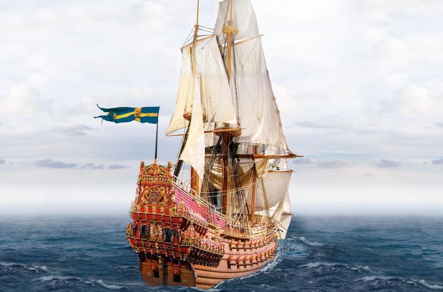 Další válečná loď švédského krále Gustava II. Adolfa, velká 67 x 12 metrů, byla spuštěna na vodu roku 1628. Potopila se však hned během panenské první plavby kvůli špatné stabilitě (64 bronzových děl bylo umístěno příliš vysoko oproti nedostatečné zátěži v kýlu lodi) a usedla na dno Baltu u Stockholmu v hloubce asi 32 metrů. Pětimetrová vrstva bahna, která ji během staletí pokryla, ji dokonale zakonzervovala. V roce 1961 byl vyzvednut celistvý trup bohatě zdobený dřevěnými plastikami ve zcela zachovalém stavu. Ačkoli se ve vraku nenašly drahocenné předměty, má nesmírnou archeologickou hodnotu. (zdroj: Muzeum Vasa, CC BY 4.0)