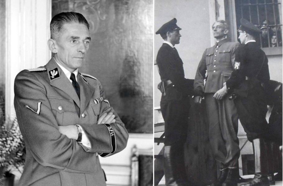 Karl Hermann Frank (1898–1946), bývalý knihkupec původem z Karlových Varů, se vyšvihl do nejvyšších pater okupační správ. Za své válečné zločiny byl popraven v pankrácké věznici 22. května 1946.