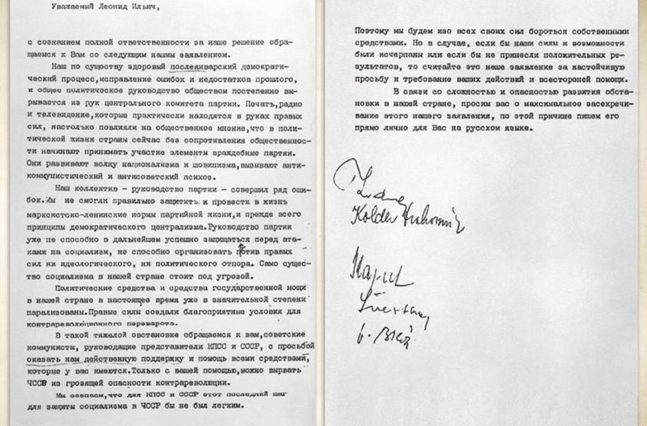 V této těžké situaci se obracíme na vás, sovětské komunisty, vedoucí představitele KSSS a SSSR, s prosbou o poskytnutí účinné podpory a pomoci všemi prostředky, které máte k dispozici. Jedině s vaší pomocí lze vytrhnout ČSSR z hrozícího nebezpečí kontrarevoluce.