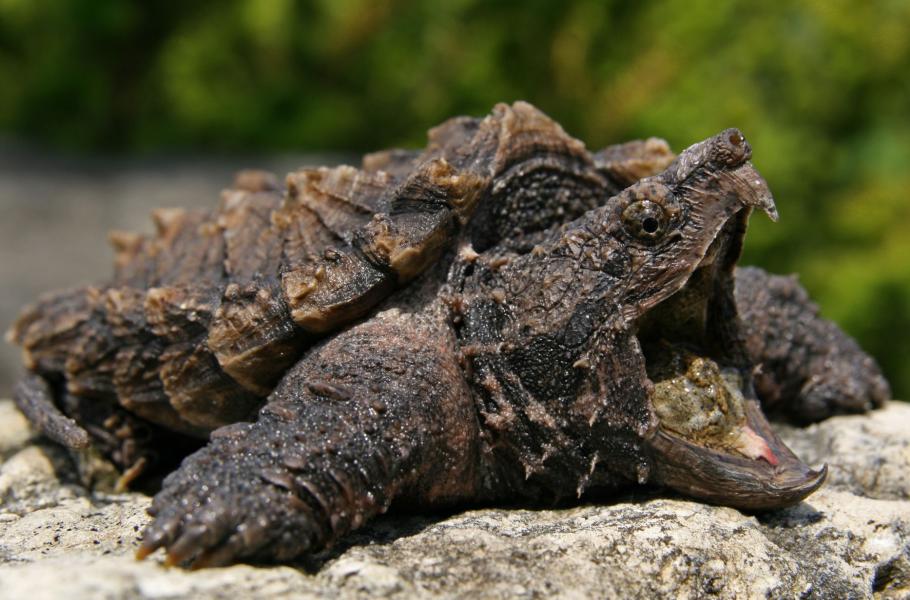 Tyto dravé želvy loví ryby na vlastní návnadu - kmitající jazyk, který se podobá zmítajícímu se červovi. Jejich jídelníček se skládá z ulovených i uhynulých ryb, ale jsou oportunisty, kteří nepohrdnou ani měkkýši, obojživelníky a zbytky jakýchkoli mrtvých vodních živočichů.