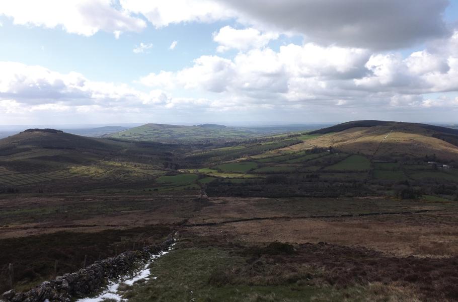 Výhled do krajiny podél cursusu Keadeen, poblíž irského městečka Baltinglass. (foto: Antiquity, O'Driscoll, CC BY-SA 4.0)