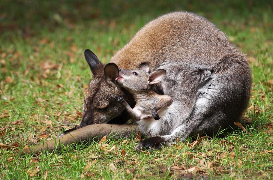 Klokani jsou pověstní zvláštnostmi svého rozmnožování. I u těch největších druhů klokanů netrvá březost déle než měsíc.