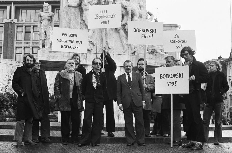 Protestní demonstrace nizozemských osobností za propuštění Vladimira Bukovského – ruského politického aktivistu, neurofyziologa a spisovatele. V 60. a 70. letech 20. století se stal jednou z vůdčích osobností sovětského disentu. Kvůli své angažovanosti strávil 12 let v sovětských věznicích, pracovních táborech a psychiatrických léčebnách.